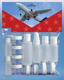 Travel accessories namely an assemblage of containers packaged for traveling by air, bus, car, and the like