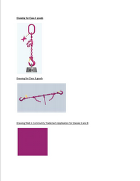 Round steel chains, rigging chains, in particular comprising a ratchet tensioner, a suspension head and/or at least one ring fork; chain slings, rigging and lashing chains, chain links, chain joints, chain tensioners, chain sprockets, chain shorteners, suspension heads, suspension links, suspension pivots, chain blocks, rocker balances; devices and components for shortening chains, in particular connectors, connector bracket, connector clamp, coupling joints, shortening couplers, shortening hooks, shortening claws; metal hooks, metal eyes, expansion braces of metal, metal claws, metal shackles, ring forks of metal, fork heads of metal, metal sprockets, swivel adapters of metal, load rings of metal, metal bolts, metal bolts for fork heads, ring nuts of metal, eye bolts of metal, load rings of metal, ring gears of metal, attachment eyes of metal, suspension brackets of metal, suspension points of metal and balances of metal, all for use in connection with chains; chain gear and bracers for chain gear; tensioning devices and spring buffers for lashing loads; overload indicating devices and elements for chains, namely, identification tags with integrated chain testing gauge and control elements, chain links of metal for overload control; fittings for containers