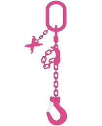Round steel chains; metal rigging chains; metal rigging chains comprising a ratchet tensioner, a suspension head and/or at least one ring fork; structural parts for metal chains, namely, chain slings, rigging and lashing chains, chain links, chain joints, chain tensioners, chain sprockets, chain shorteners, suspension heads, suspension links, suspension pivots, chain blocks, rocker balances; devices and components for shortening chains, namely, metal chain connectors, connector bracket, connector clamp, coupling joints, shortening couplers, shortening hooks, shortening claws; metal hardware, namely, metal hooks, metal eyes, expansion braces of metal, metal claws, metal shackles, ring forks of metal, fork heads of metal, metal sprockets, swivel adapters of metal, load rings of metal, metal bolts, metal bolts for fork heads, ring nuts of metal, eye bolts of metal, ring gears of metal, attachment eyes of metal, suspension brackets of metal, suspension points of metal and balances of metal, all for use in connection with chains; chain harnesses of metal and metal bracers for chain harnesses; tensioning devices and spring buffers for lashing loads; overload indicating devices in the nature of tension links of metal and elements for chains, namely, identification tags of metal with integrated chain testing gauge and control elements; structural parts for metal chains, namely, chain links of metal for overload control; metal fittings for containers